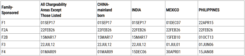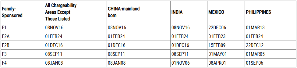 (Dates For Filing Family-Sponsored Visa Applications)