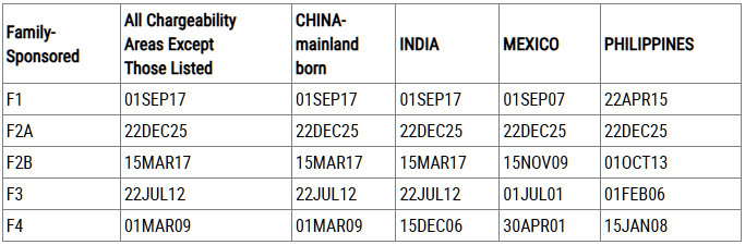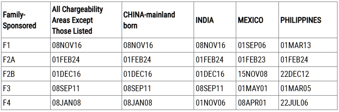 (Dates For Filing Family-Sponsored Visa Applications)