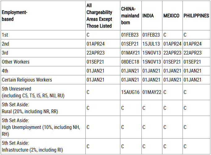 (Final Action Dates for Employment-Based Preference Cases)
